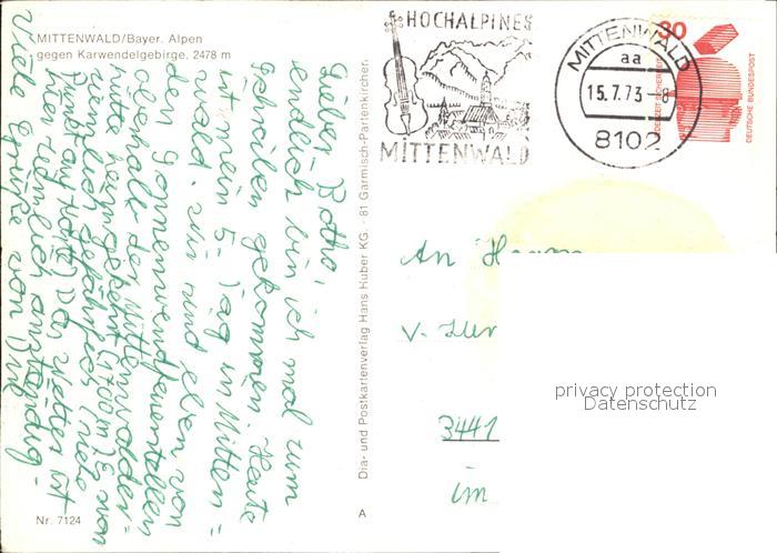 72437256 alte Postkarte Mittenwald Bayern Karwendelgebirge postalisch gelaufen Erhaltung siehe scans KatCode: 11110009180123