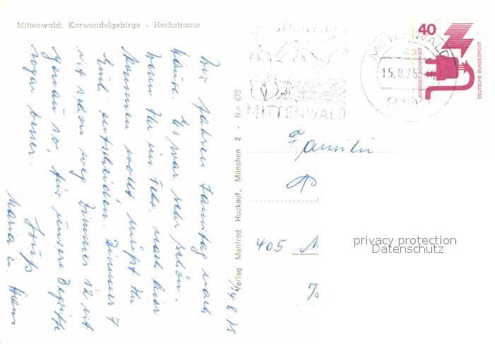72705763 alte Postkarte Mittenwald Bayern Karwendelgebirge postalisch gelaufen Erhaltung siehe scans [AndreD76] KatCode: 11110009180123