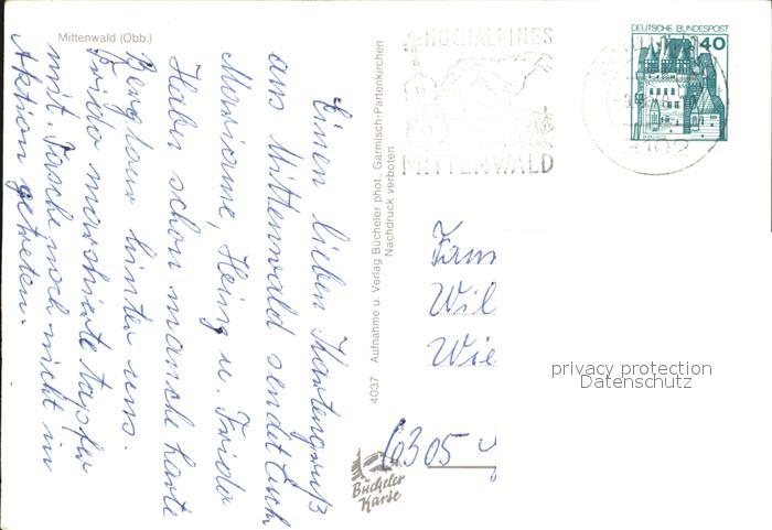 72547587 alte Postkarte Mittenwald Bayern Kirche Stadtblick Teilansichten postalisch gelaufen Erhaltung siehe scans [WerneD78 kv017box] KatCode: 11110009180123