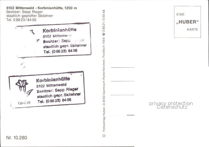 72549241 Mittenwald Bayern Korbinianhuette postalisch nicht gelaufen Erhaltung siehe scans [LiesaD40 kv021box] KatCode: 11110009180123