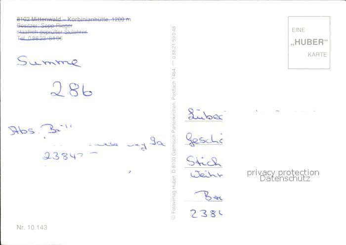 72279826 Mittenwald Bayern Korbinianhuette Wintersportplatz Kranzberg Alpen postalisch nicht gelaufen Erhaltung siehe scans KatCode: 11110009180123
