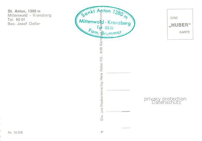 73541283 Mittenwald Bayern Kranzberg Gasthof Sankt Anton postalisch nicht gelaufen Erhaltung siehe scans [KathaD81] KatCode: 11110009180123