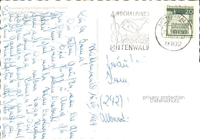 72477747 alte Postkarte Mittenwald Bayern Kranzberg Gipfelbahn Karwendel Berggasthof Kranzberg St Anton postalisch gelaufen Erhaltung siehe scans KatCode: 11110009180123