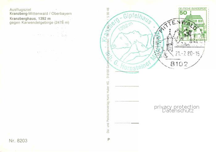 72837360 Mittenwald Bayern Kranzberg Kranzberghaus Karwendelgebirge postalisch nicht gelaufen Erhaltung siehe scans [NatalD47] KatCode: 11110009180123