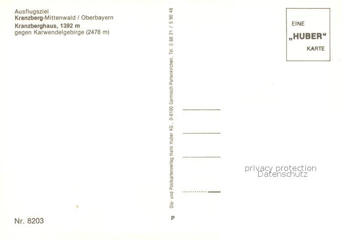 73079295 Mittenwald Bayern Kranzberg Kranzberghaus postalisch nicht gelaufen Erhaltung siehe scans [KathaD81] KatCode: 11110009180123