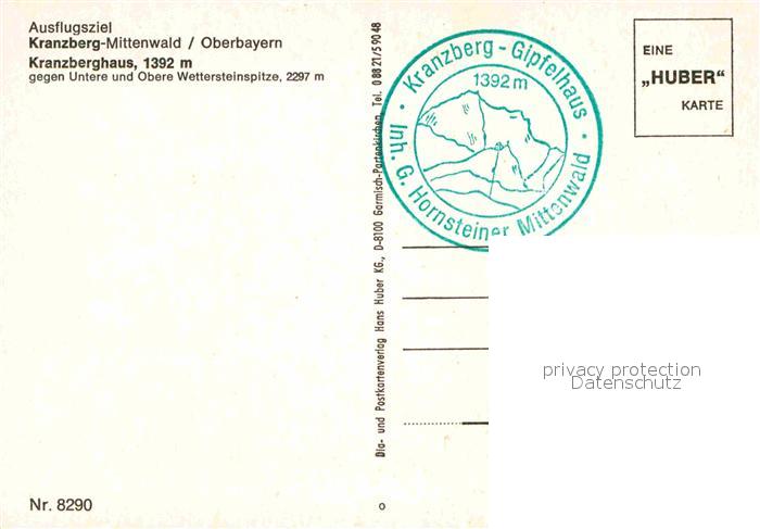 72837359 Mittenwald Bayern Kranzberg Kranzberhaus Wettersteinspitze postalisch nicht gelaufen Erhaltung siehe scans [NatalD47] KatCode: 11110009180123