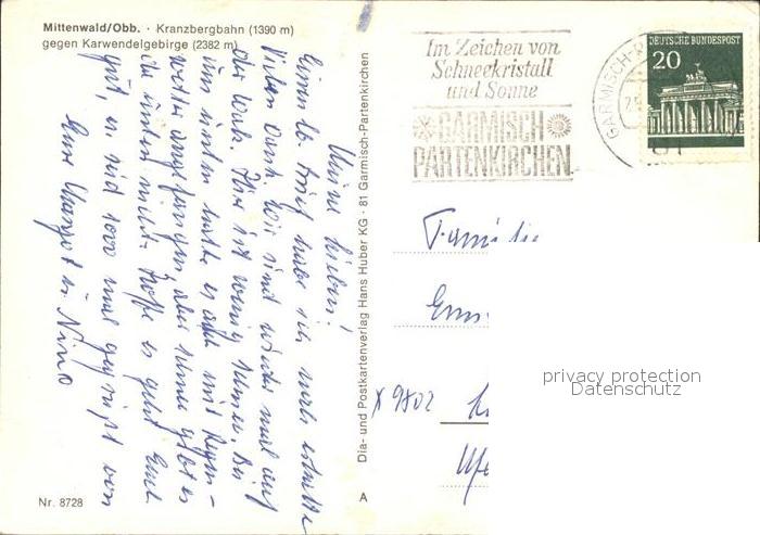71901908 alte Postkarte Mittenwald Bayern Kranzbergbahn postalisch gelaufen Erhaltung siehe scans KatCode: 11110009180123