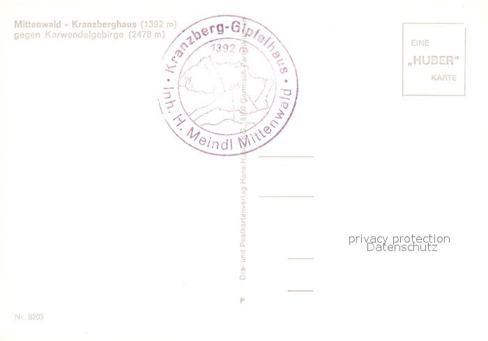 72953748 Mittenwald Bayern Kranzberghaus Karwendelgebirge postalisch nicht gelaufen Erhaltung siehe scans [PaolaD17] KatCode: 11110009180123