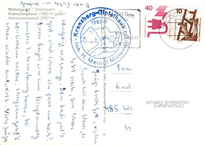 73010189 alte Postkarte Mittenwald Bayern Kranzberghaus mit Wettersteinwand postalisch gelaufen Erhaltung siehe scans [WerneD78] KatCode: 11110009180123