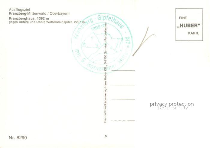 73311480 Mittenwald Bayern Kranzberghaus Wettersteingebirge Huber Karte Nr 8290 postalisch nicht gelaufen Erhaltung siehe scans [FriedD77] KatCode: 11110009180123