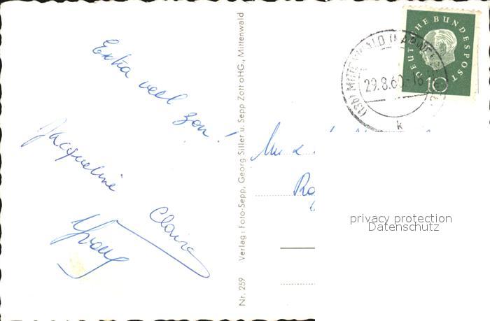 72565515 alte Postkarte Mittenwald Bayern Kranzberghuette gegen Woerner postalisch gelaufen Erhaltung siehe scans [LiesaD40] KatCode: 11110009180123