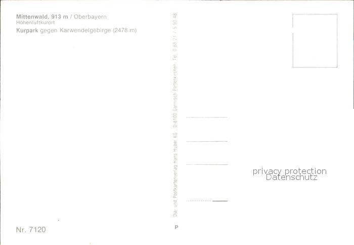 72614473 Mittenwald Bayern Kurpark Kirche Karwendel postalisch nicht gelaufen Erhaltung siehe scans [WerneD78] KatCode: 11110009180123