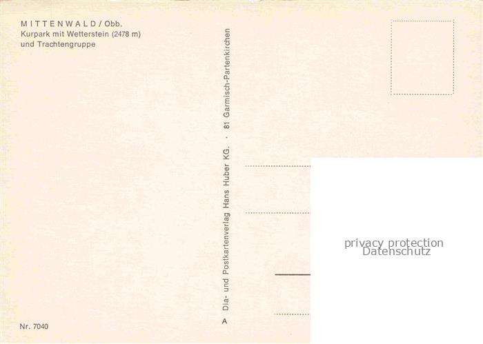 74024697 MITTENWALD Bayern Kurpark mit Wetterstein Trachtengruppe postalisch nicht gelaufen Erhaltung siehe scans [FriedD77] KatCode: 11110009180123