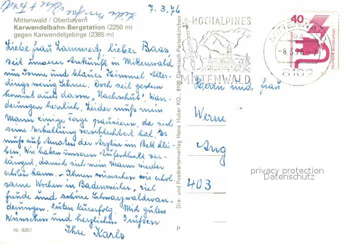 72842612 alte Postkarte Mittenwald Bayern Luftseilbahn Bergstation Karwendelgebirge postalisch gelaufen Erhaltung siehe scans [NatalD47] KatCode: 11110009180123