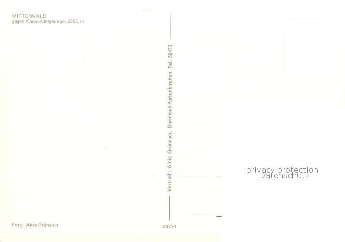 73022565 Mittenwald Bayern mit Karwendelgebirge postalisch nicht gelaufen Erhaltung siehe scans [WerneD78] KatCode: 11110009180123