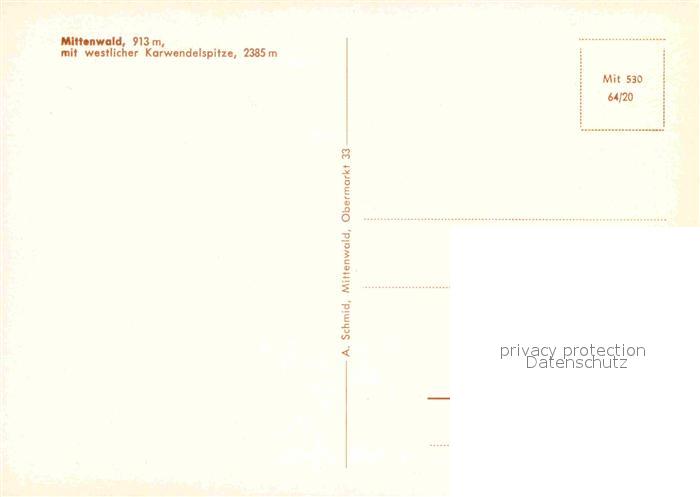 72691355 Mittenwald Bayern mit westlicher Karwendelspitze postalisch nicht gelaufen Erhaltung siehe scans [FriedD77] KatCode: 11110009180123
