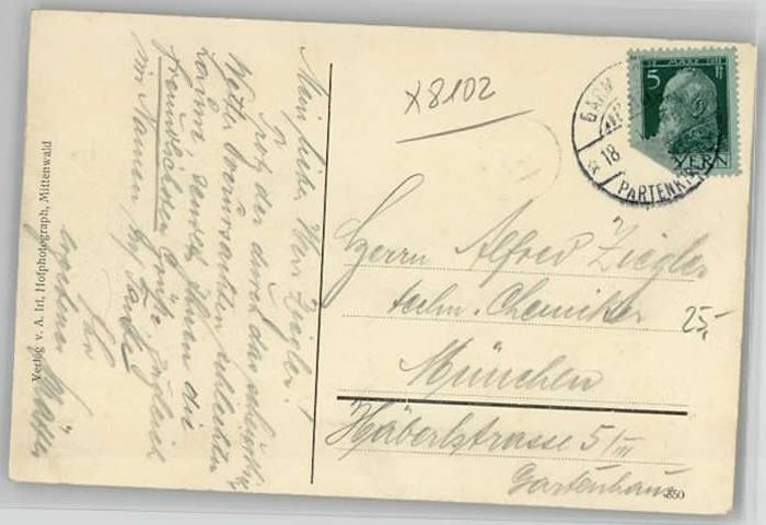 Mittenwald Bayern Mittenwald Hotel Wetterstein x 1913