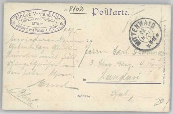 40205816 Mittenwald Bayern Mittenwald [Stempelabschlag] Feldpost x 1915 KatCode 11110009180123