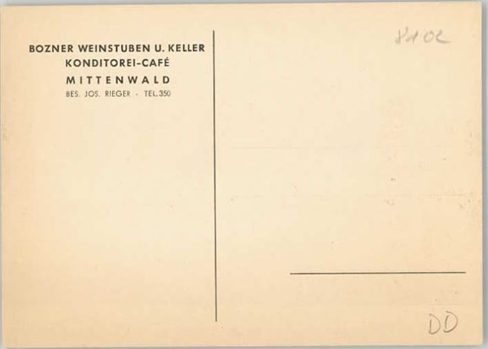 40205873 Mittenwald Bayern Mittenwald Weinstube U. Keller ungelaufen ca. 1920 KatCode 11110009180123