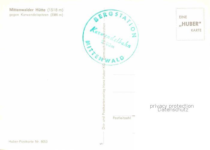 72826173 Mittenwald Bayern Mittenwalder Huette Karwendelspitzen postalisch nicht gelaufen Erhaltung siehe scans [NatalD47] KatCode: 11110009180123