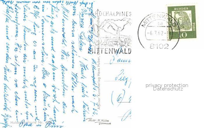 72684803 alte Postkarte Mittenwald Bayern Mittenwalderhuette Karwendelspitzen postalisch gelaufen Erhaltung siehe scans [NatalD47] KatCode: 11110009180123