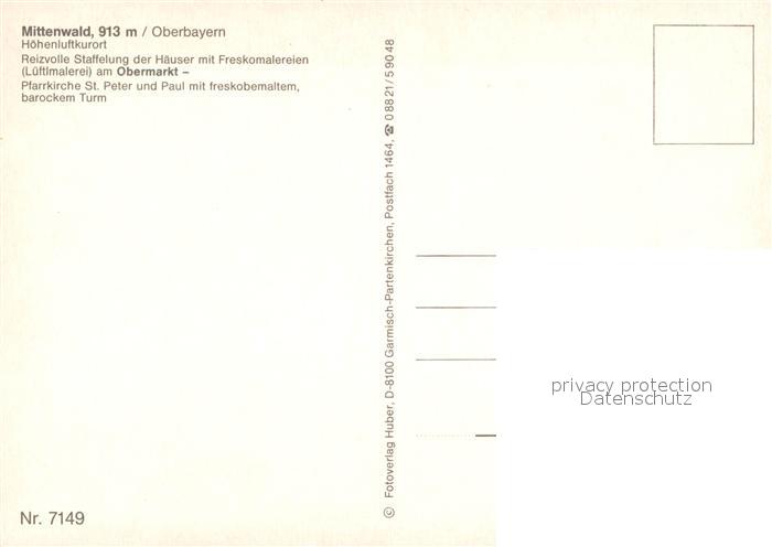 73266063 Mittenwald Bayern Obermarkt Haeuser mit Freskomalereien Lueftlmalerei Kirche im Winter postalisch nicht gelaufen Erhaltung siehe scans [FriedD77] KatCode: 11110009180123