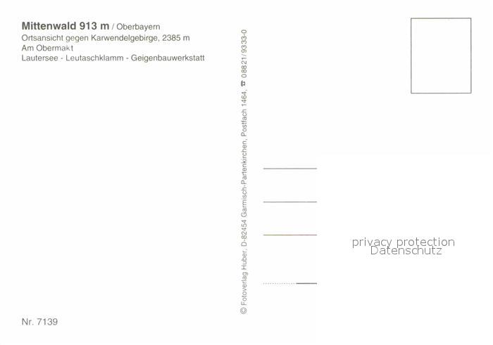 72896212 Mittenwald Bayern Obermarkt Lautersee Leutaschklamm postalisch nicht gelaufen Erhaltung siehe scans [KathaD81] KatCode: 11110009180123