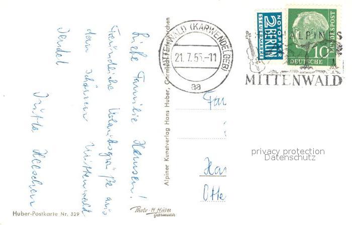 73016598 alte Postkarte Mittenwald Bayern Obermarkt mit Karwendelgebirge postalisch gelaufen Erhaltung siehe scans [WerneD78] KatCode: 11110009180123