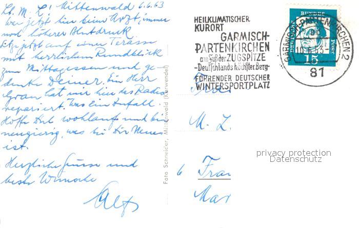 72920188 alte Postkarte Mittenwald Bayern Obermarkt mit Pfarrkirche postalisch gelaufen Erhaltung siehe scans [LiesaD40] KatCode: 11110009180123