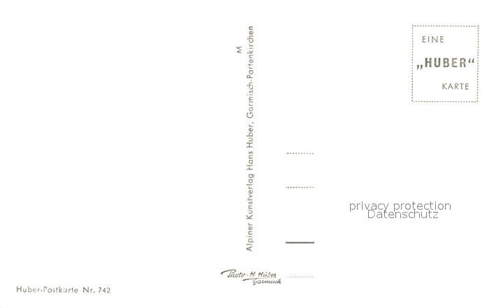 72944659 Mittenwald Bayern Obermarkt mit Pfarrkirche Cafe Konditorei Fassadenmalerei Huber Karte Nr 742 postalisch nicht gelaufen Erhaltung siehe scans [FriedD77] KatCode: 11110009180123