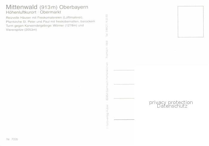 72896213 Mittenwald Bayern Obermarkt Viererspitze Woerner postalisch nicht gelaufen Erhaltung siehe scans [KathaD81] KatCode: 11110009180123