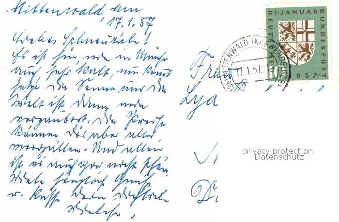 72775209 alte Postkarte Mittenwald Bayern Obermarkt Winter postalisch gelaufen Erhaltung siehe scans [KathaD81] KatCode: 11110009180123