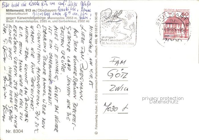 72528370 alte Postkarte Mittenwald Bayern Ortsansicht mit Kirche Hoehenluftkurort Karwendelgebirge Bergbahn postalisch gelaufen Erhaltung siehe scans KatCode: 11110009180123