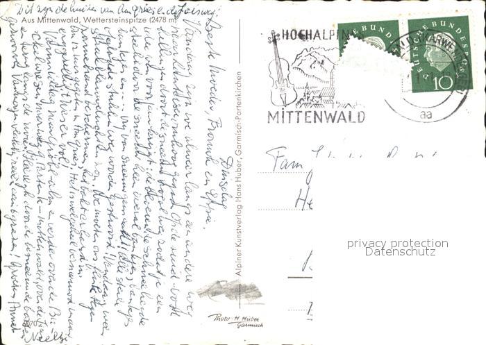 72403457 alte Postkarte Mittenwald Bayern Ortspartie im Winter mit Wettersteinspitze postalisch gelaufen Erhaltung siehe scans KatCode: 11110009180123