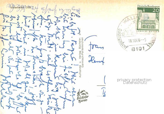 72825073 alte Postkarte Mittenwald Bayern Ortspartie mit Kirche postalisch gelaufen Erhaltung siehe scans [LiesaD40] KatCode: 11110009180123