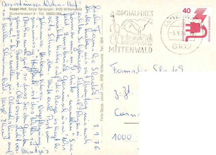 73879725 alte Postkarte Mittenwald Bayern Seppl Hof postalisch gelaufen Erhaltung siehe scans [WerneD78] KatCode: 11110009180123