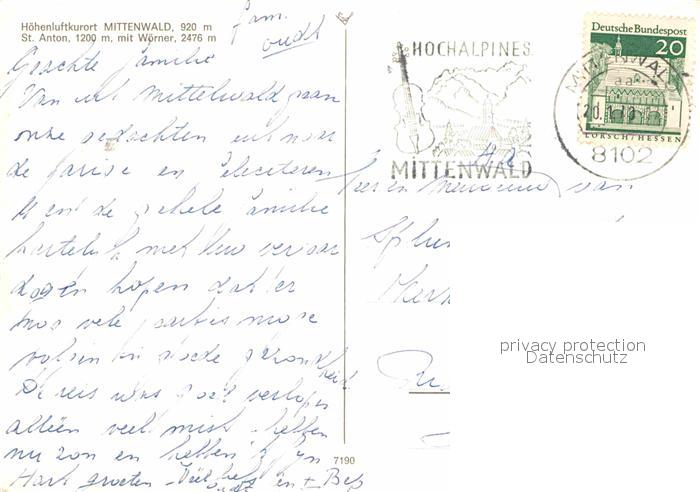 72661238 alte Postkarte Mittenwald Bayern Skiparadies Kreuzberg St Anton und Woerner postalisch gelaufen Erhaltung siehe scans [WerneD78] KatCode: 11110009180123