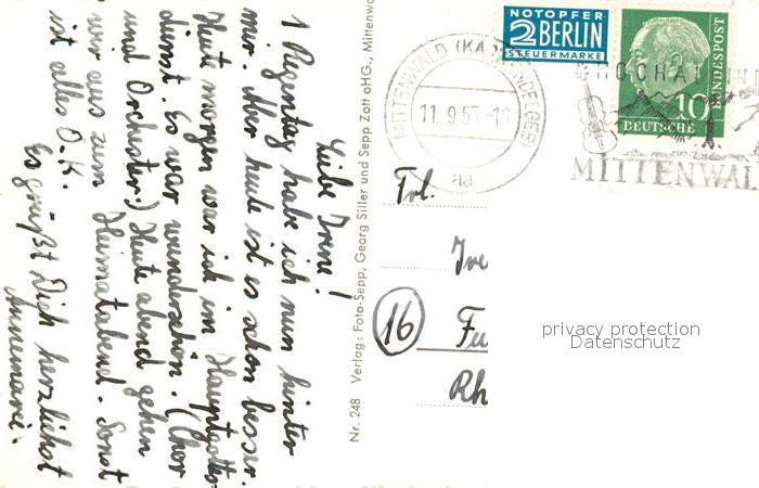 73246368 alte Postkarte Mittenwald Bayern Strassenpartie postalisch gelaufen Erhaltung siehe scans [KathaD81] KatCode: 11110009180123