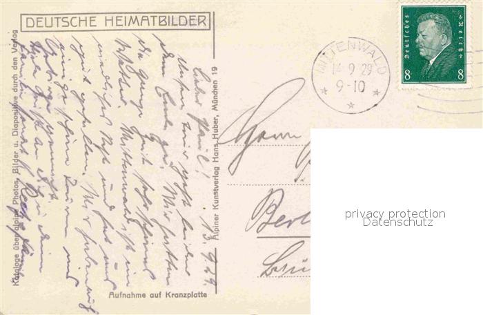 72822663 alte Postkarte Mittenwald Bayern Strassenpartie Blick auf Reiterspitze Serie Deutsche Heimatbilder postalisch gelaufen Erhaltung siehe scans [FriedD77] KatCode: 11110009180123