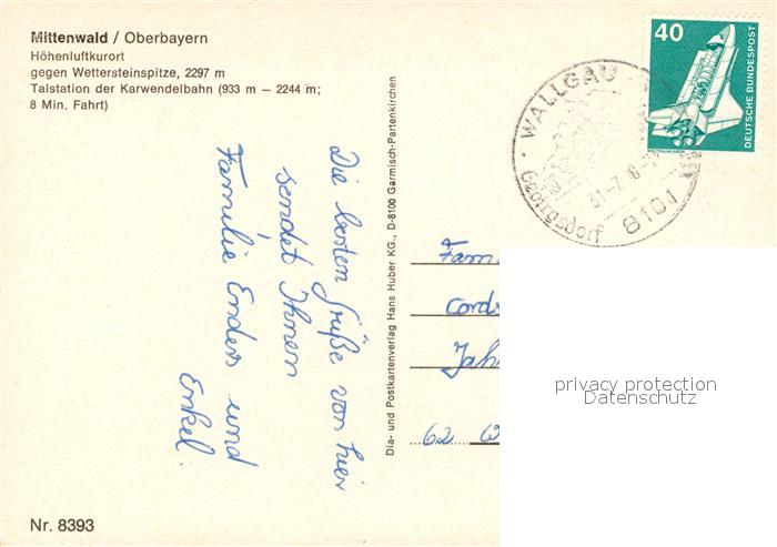 73270604 alte Postkarte Mittenwald Bayern Talstation der Karwendelbahn mit Wetterstein postalisch gelaufen Erhaltung siehe scans [WerneD78] KatCode: 11110009180123