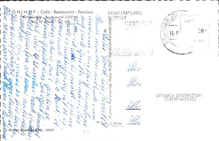 72311849 alte Postkarte Mittenwald Bayern Tonihof mit Zugspitze postalisch gelaufen Erhaltung siehe scans KatCode: 11110009180123