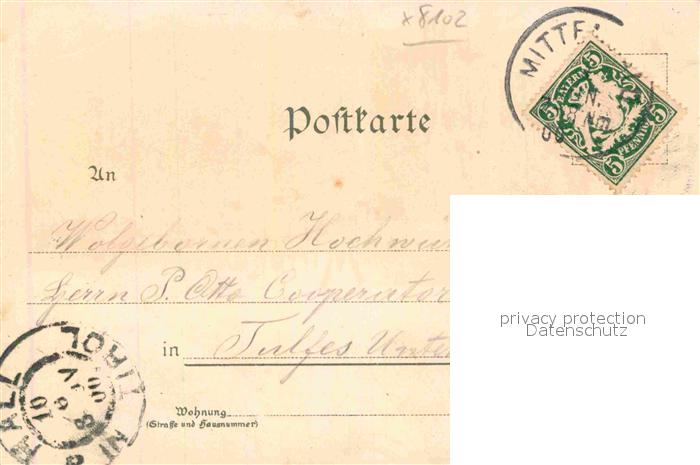 42642387 alte Postkarte Mittenwald Bayern Untermarkt Panorama Klotz Denkmal postalisch gelaufen Erhaltung siehe scans [KathaD79] KatCode: 11110009180123