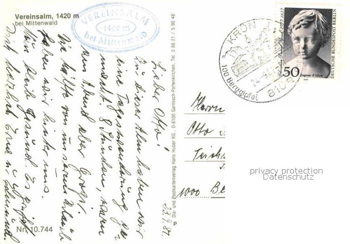 72855134 alte Postkarte Mittenwald Bayern Vereinsalm postalisch gelaufen Erhaltung siehe scans [AndreD76] KatCode: 11110009180123
