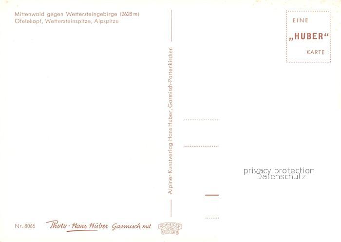 73131412 Mittenwald Bayern Wettersteingebirge Ofelekopf Alpspitze postalisch nicht gelaufen Erhaltung siehe scans [NatalD47] KatCode: 11110009180123