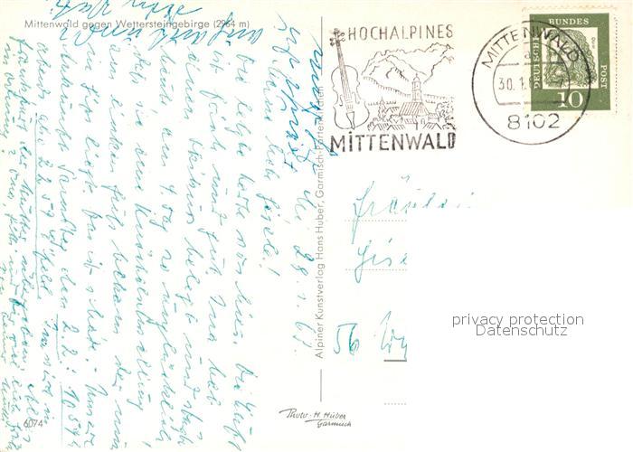 73139334 alte Postkarte Mittenwald Bayern Wettersteingebirge postalisch gelaufen Erhaltung siehe scans [NatalD47] KatCode: 11110009180123
