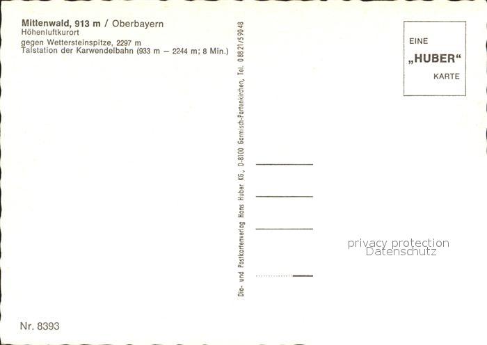 71994635 Mittenwald Bayern Wettersteinspitze Talstation Karwendelbahn postalisch nicht gelaufen Erhaltung siehe scans KatCode: 11110009180123