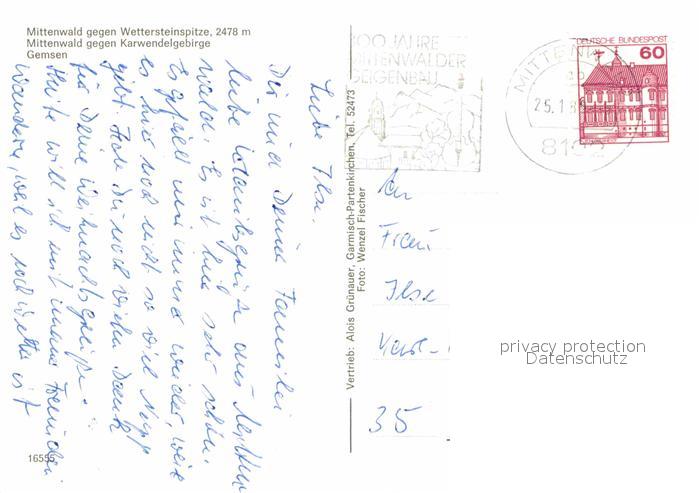 72628429 alte Postkarte Mittenwald Bayern Wettersteinspitze Tier postalisch gelaufen Erhaltung siehe scans [NatalD47] KatCode: 11110009180123