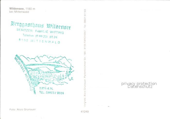 72549240 Mittenwald Bayern Wildensee postalisch nicht gelaufen Erhaltung siehe scans [LiesaD40 kv021box] KatCode: 11110009180123