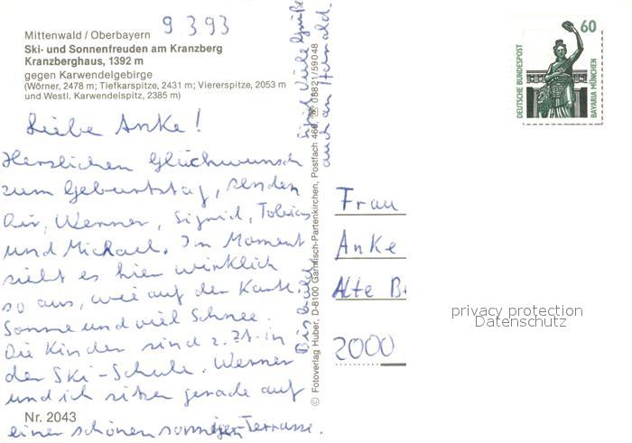73609404 Mittenwald Bayern Wintersportplatz am Kranzberg Kranzberghaus gegen Karwendelgebirge postalisch nicht gelaufen Erhaltung siehe scans [FriedD77] KatCode: 11110009180123