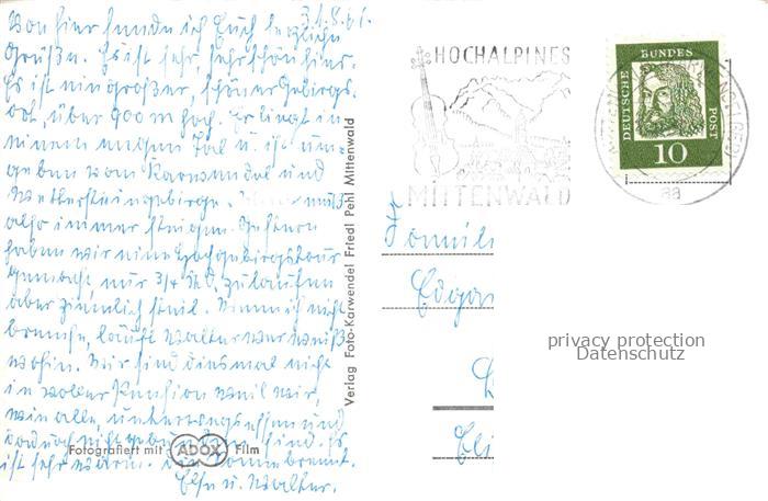 74155890 alte Postkarte Mittenwald Karwendel Tirol AT Ortsmotiv postalisch gelaufen Erhaltung siehe scans [WerneD78] KatCode: 11390335070926